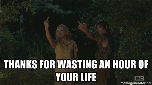 Quebraram tantas das "regras" de sobrevivência…fazerem a vontade a uma adolescente, embebedarem-se, brincarem com um walker, fazerem barulho propositadamente, incendiarem um abrigo(ainda por cima a meio da noite!).